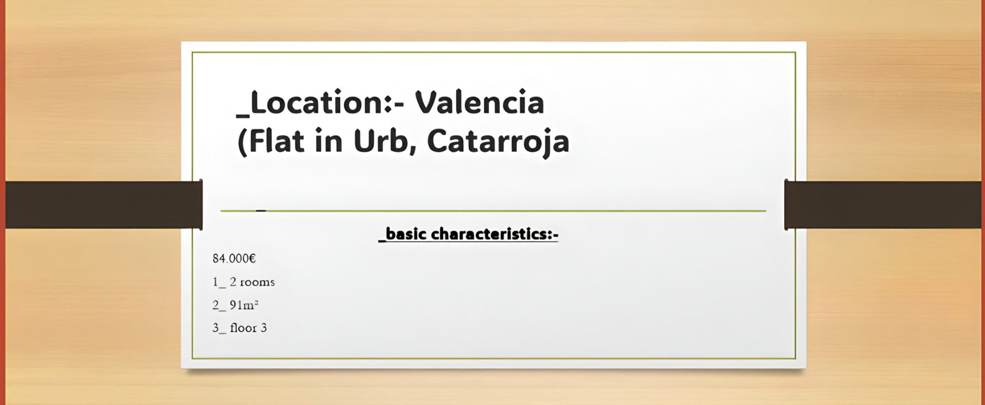 Apartment in Urb, Catarrja, Valencia, 2 bedrooms, floor 3.